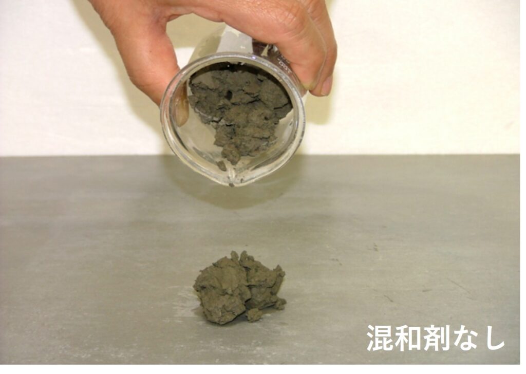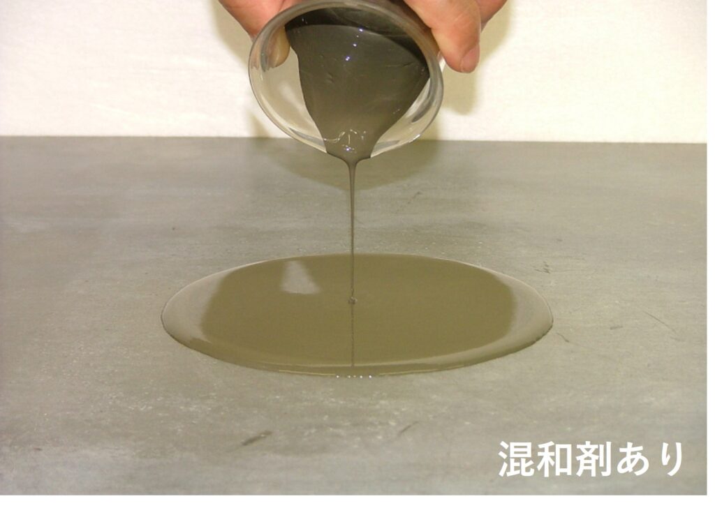 コンクリート用化学混和剤とは、その界面活性作用(分散作用や起泡作用)により、ごく少量(コンクリート1m3あたり数グラム~数キログラム程度)で、コンクリートの諸性質(流動性・硬化時間・強度発現性など)を大きく改善することが可能な薬剤です。